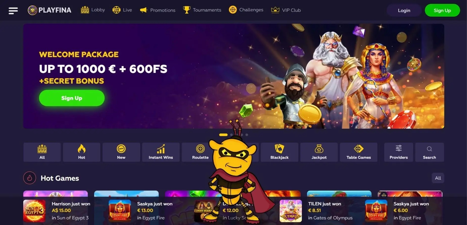 More than 11,000 slots, all varieties of blackjack, dozens of roulette games, craps, video poker, and other games are available to you at Playfina casino online Experience Thrilling Entertainment with the Playfina No Deposit Bonus Code! Play the Best Online Casino Games at Playfina ✓ Try Slots, Blackjack, Roulette, Craps and Video Poker with Huge Bonuses. Playfina Casino How to Start Up to 1000€ + 200 FS + Secret Bonus... Playfina Casino - Bonus Codes – 50 Free Spins!